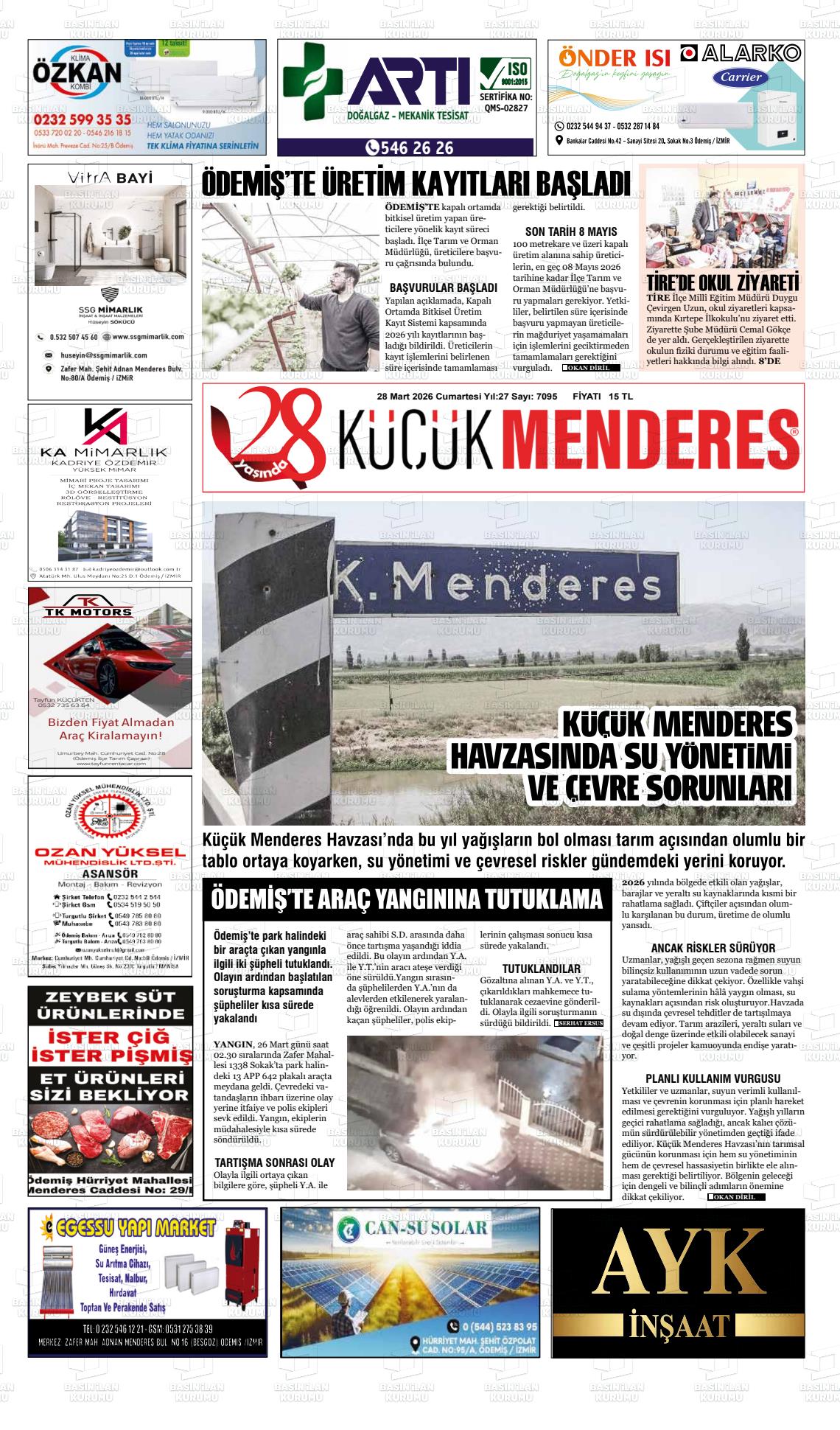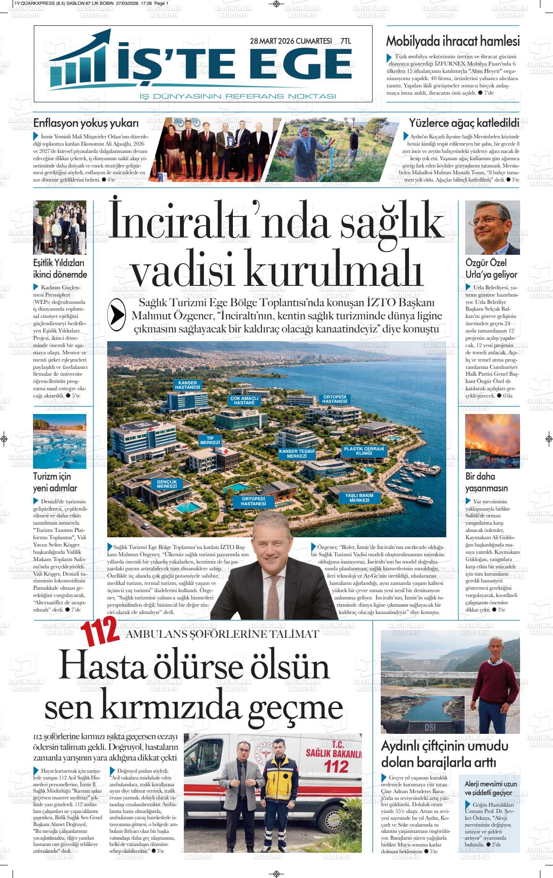 İzmİr Yerel Gazeteleri 28 Mart 2026, Cumartesi Günü Manşeti