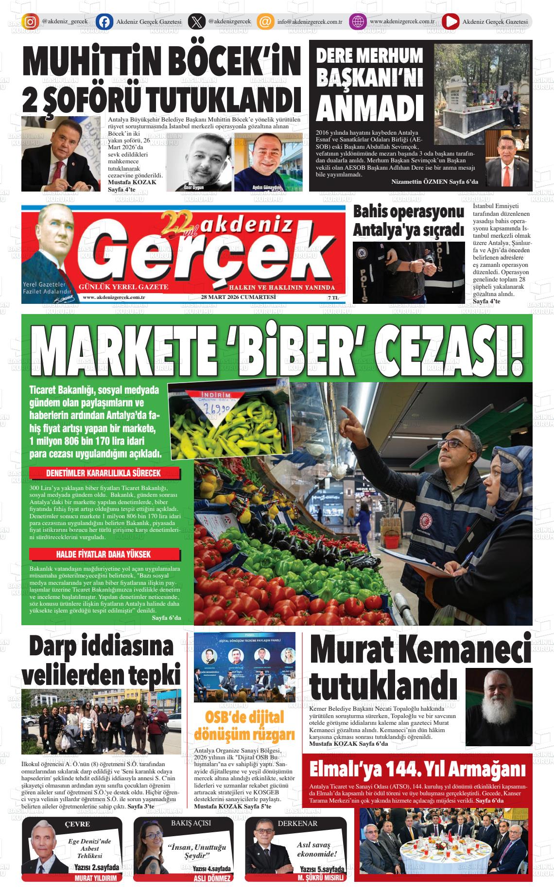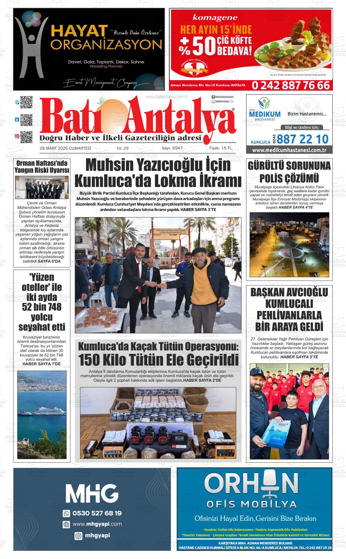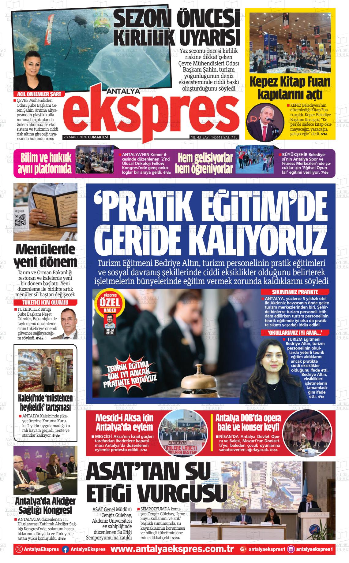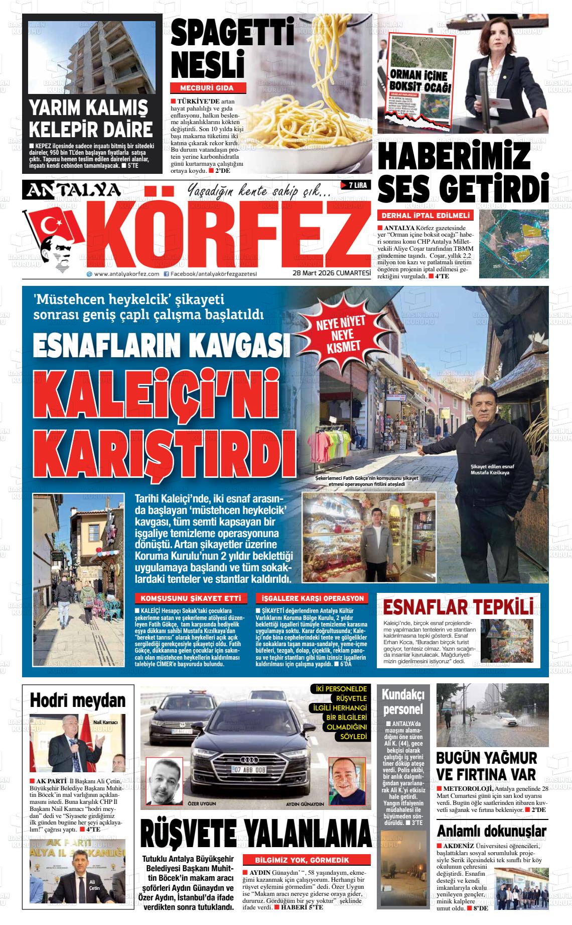 Antalya Yerel Gazeteleri 29 Mart 2026, Pazar Günü Manşeti