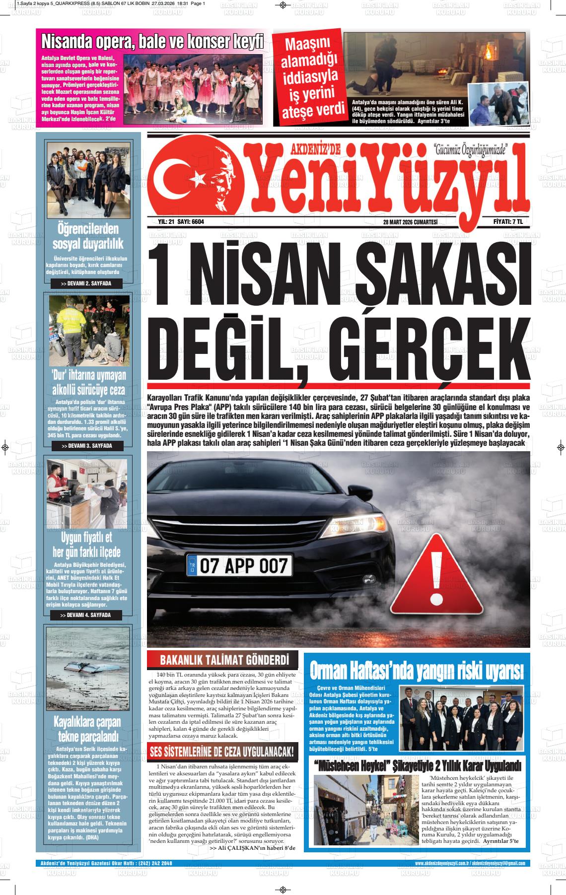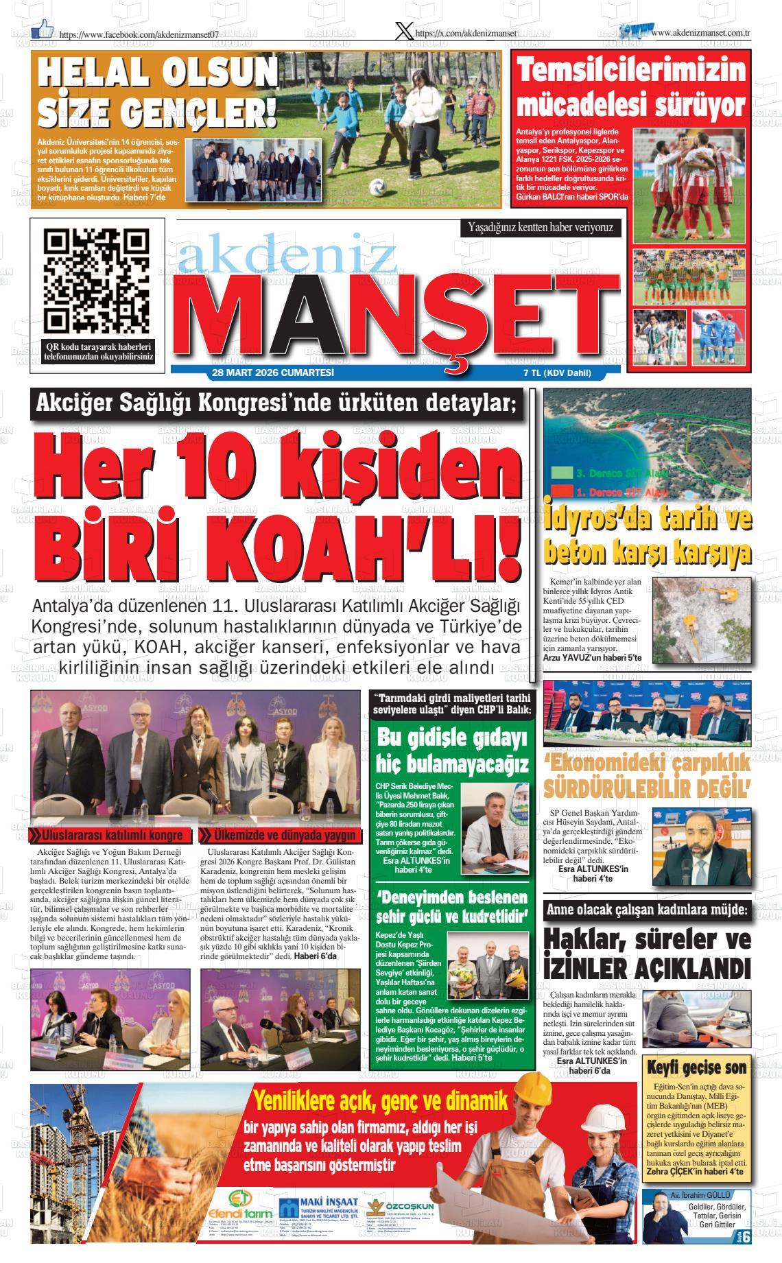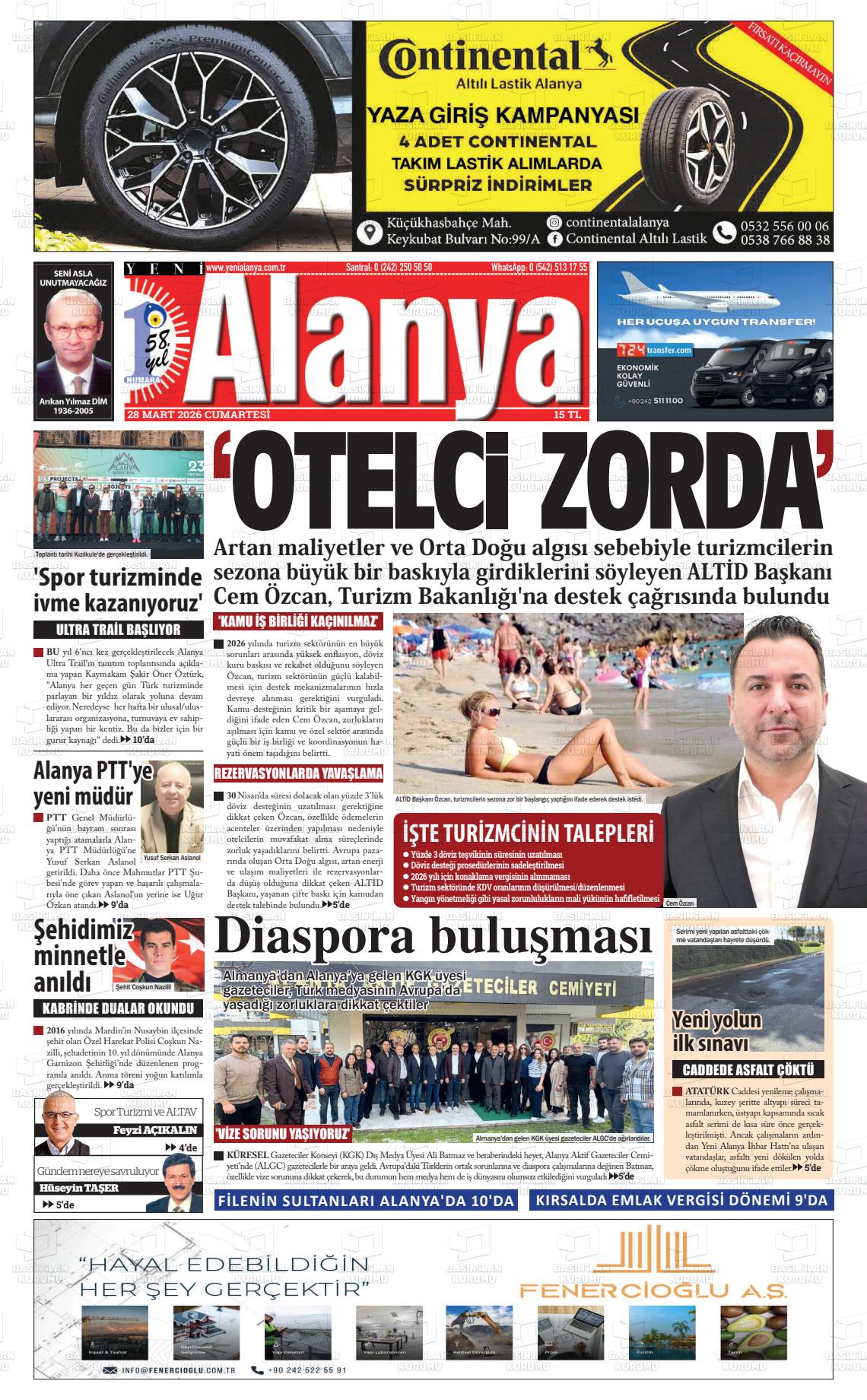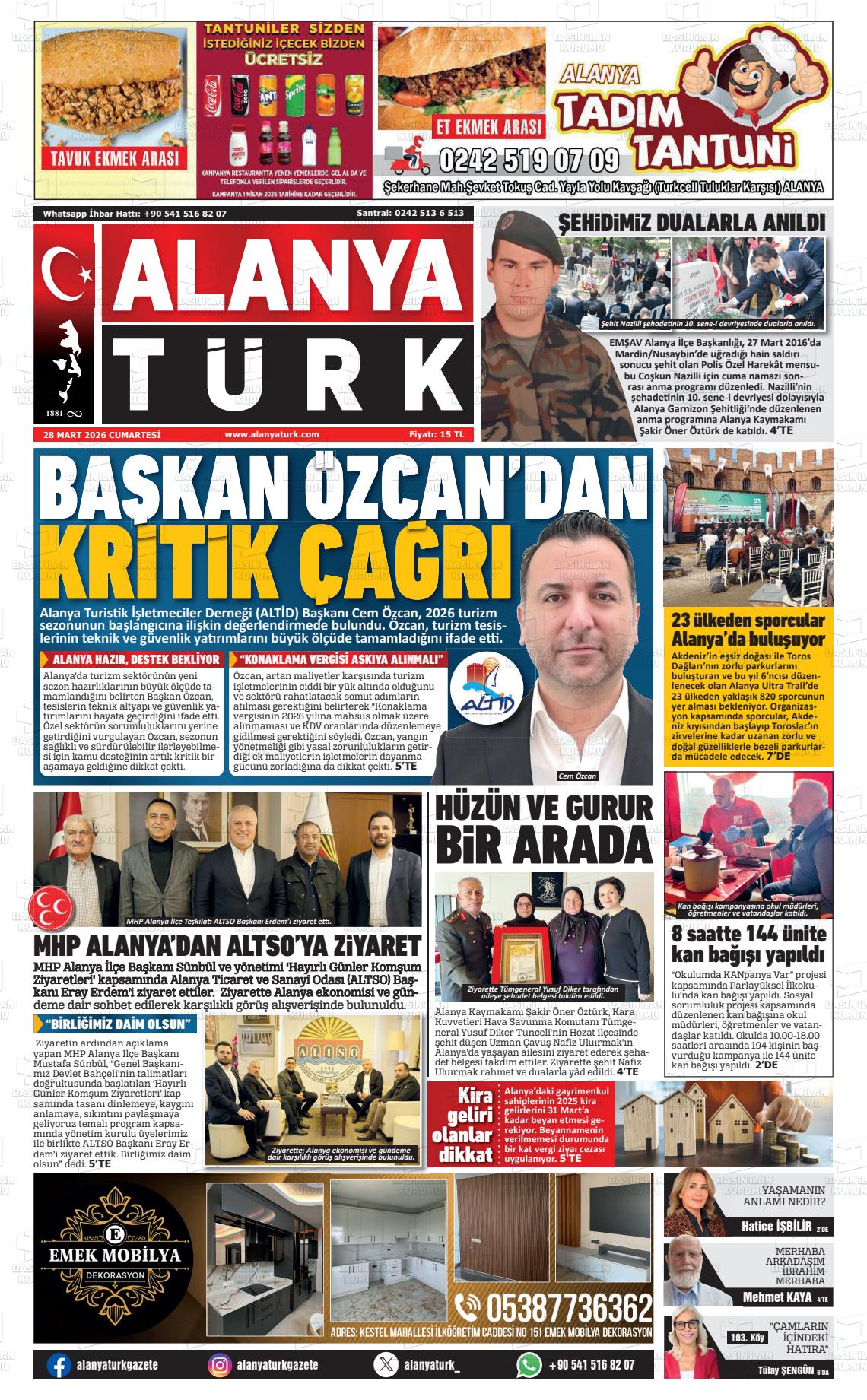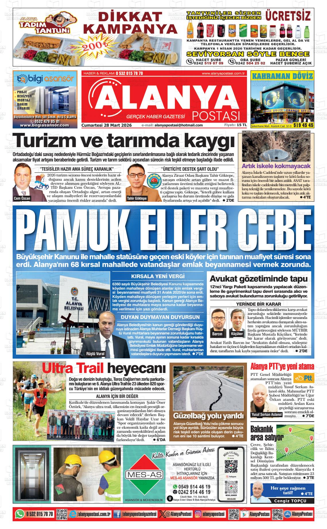 Antalya Yerel Gazeteleri 29 Mart 2026, Pazar Günü Manşeti