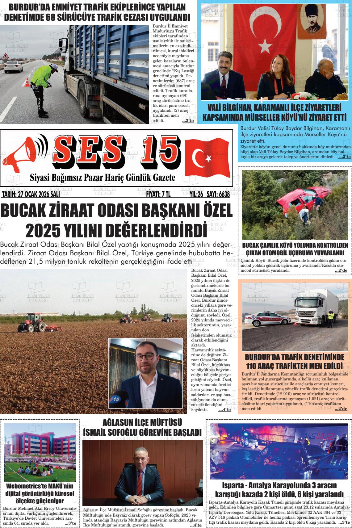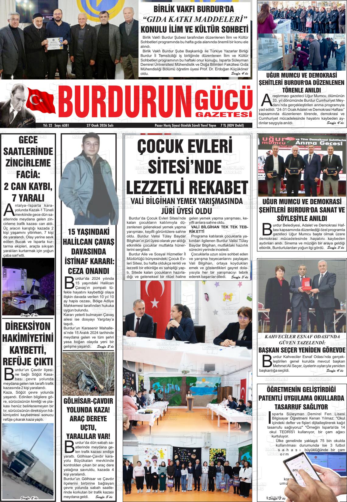 Burdur Yerel Gazeteleri 28 Ocak 2026, Çarşamba Günü Manşeti