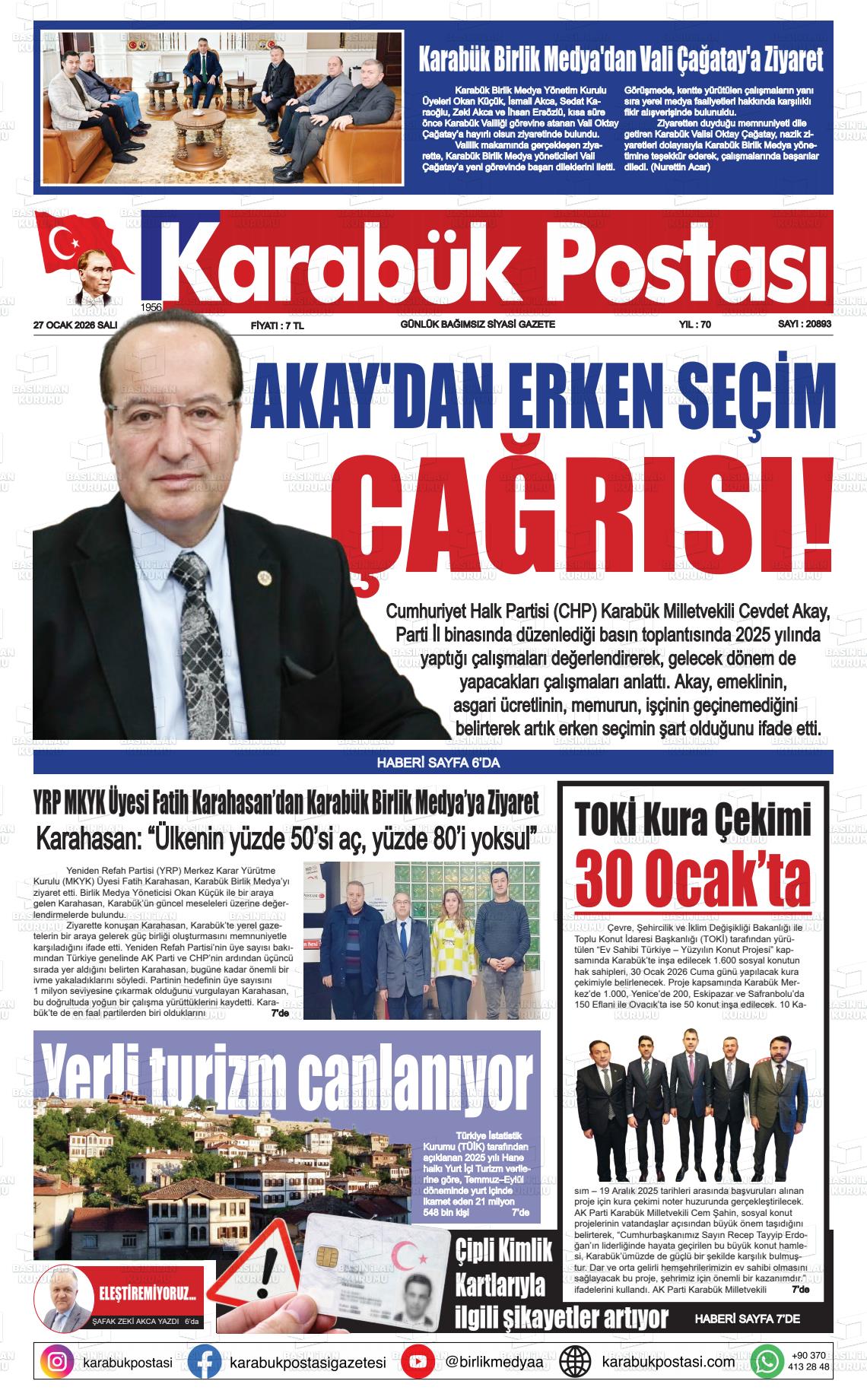 Karabük Yerel Gazeteleri 28 Ocak 2026, Çarşamba Günü Manşeti
