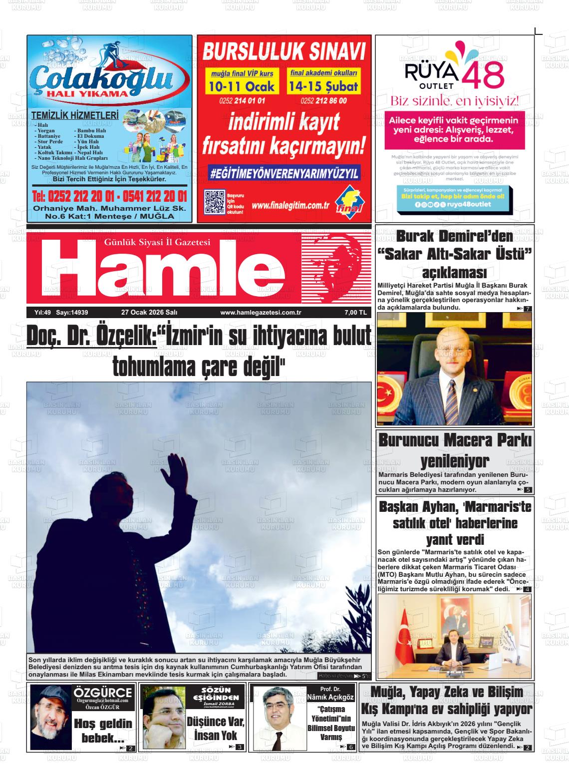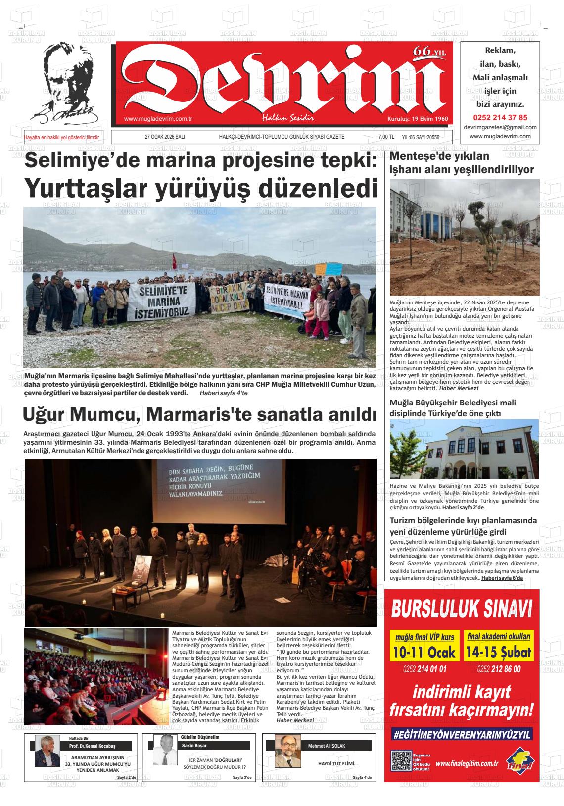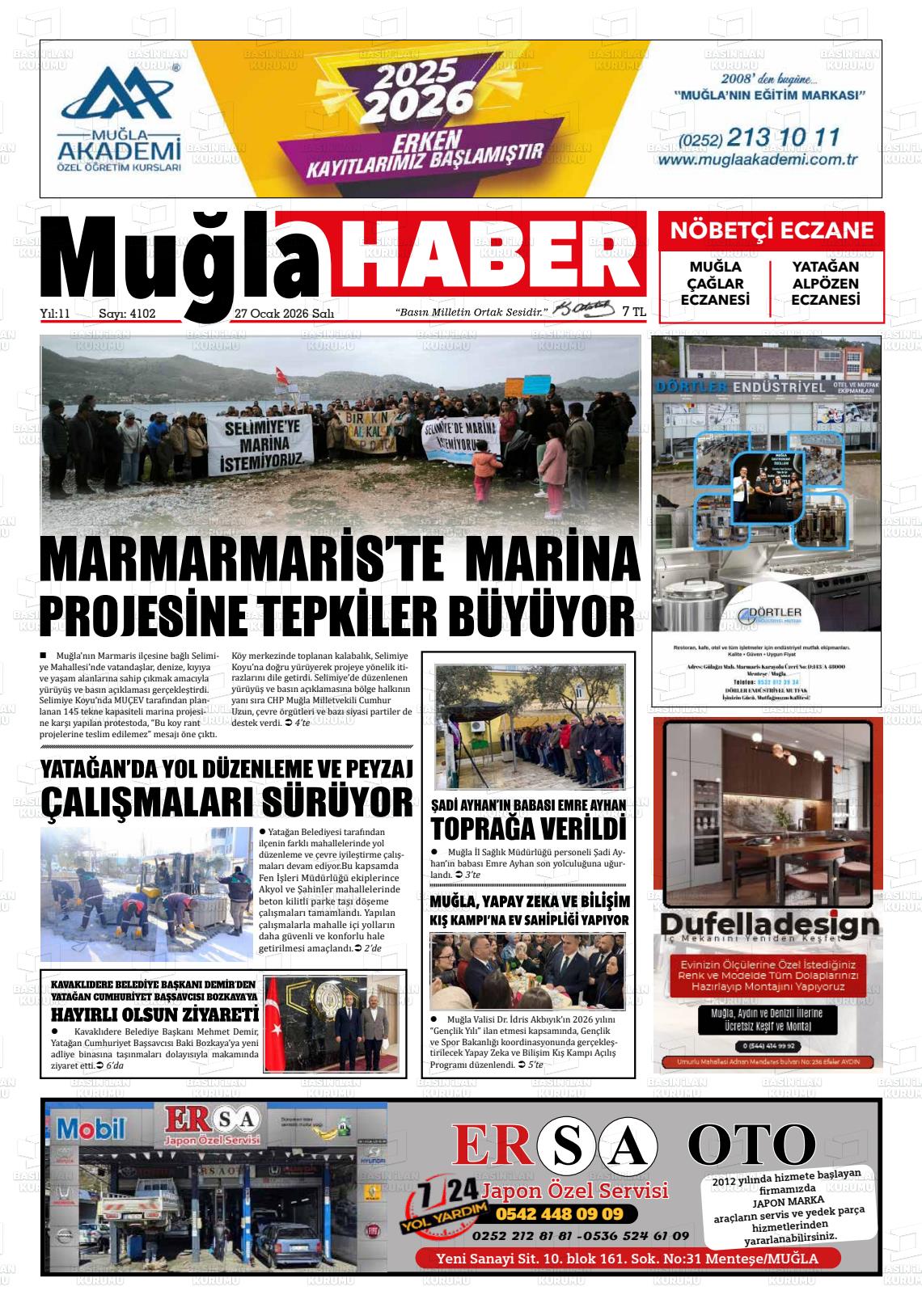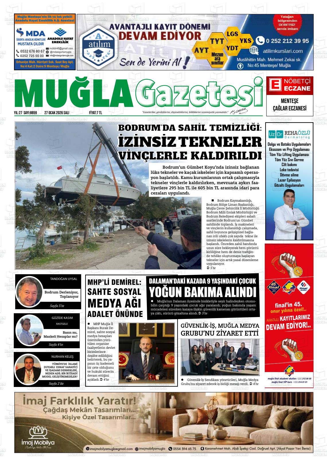 Muğla Yerel Gazeteleri 27 Ocak 2026, Salı Günü Manşeti