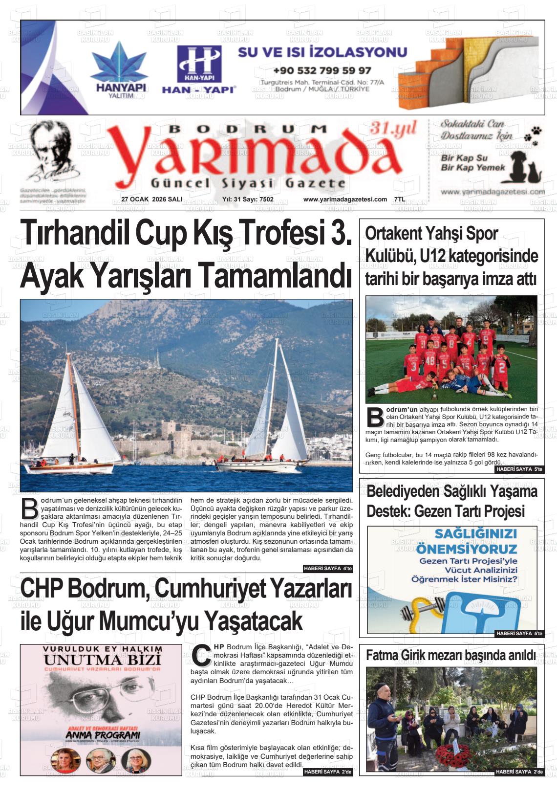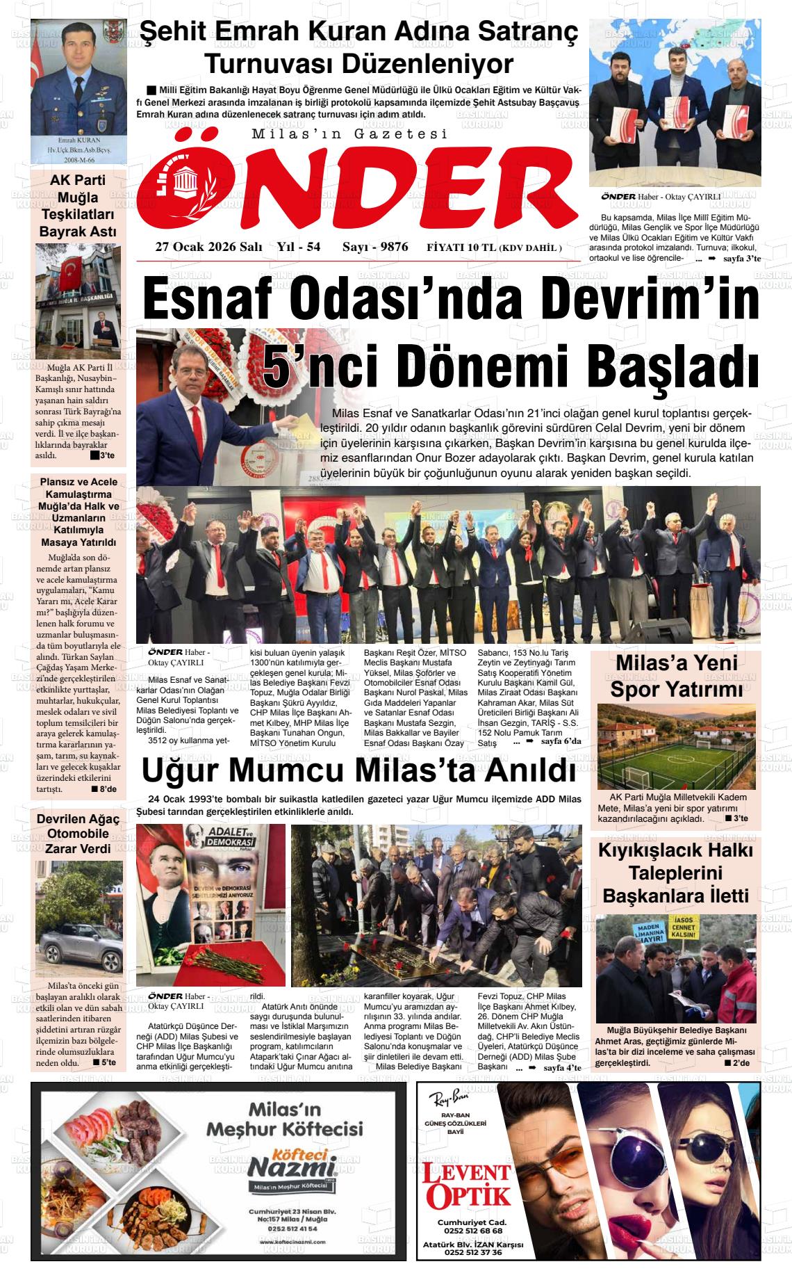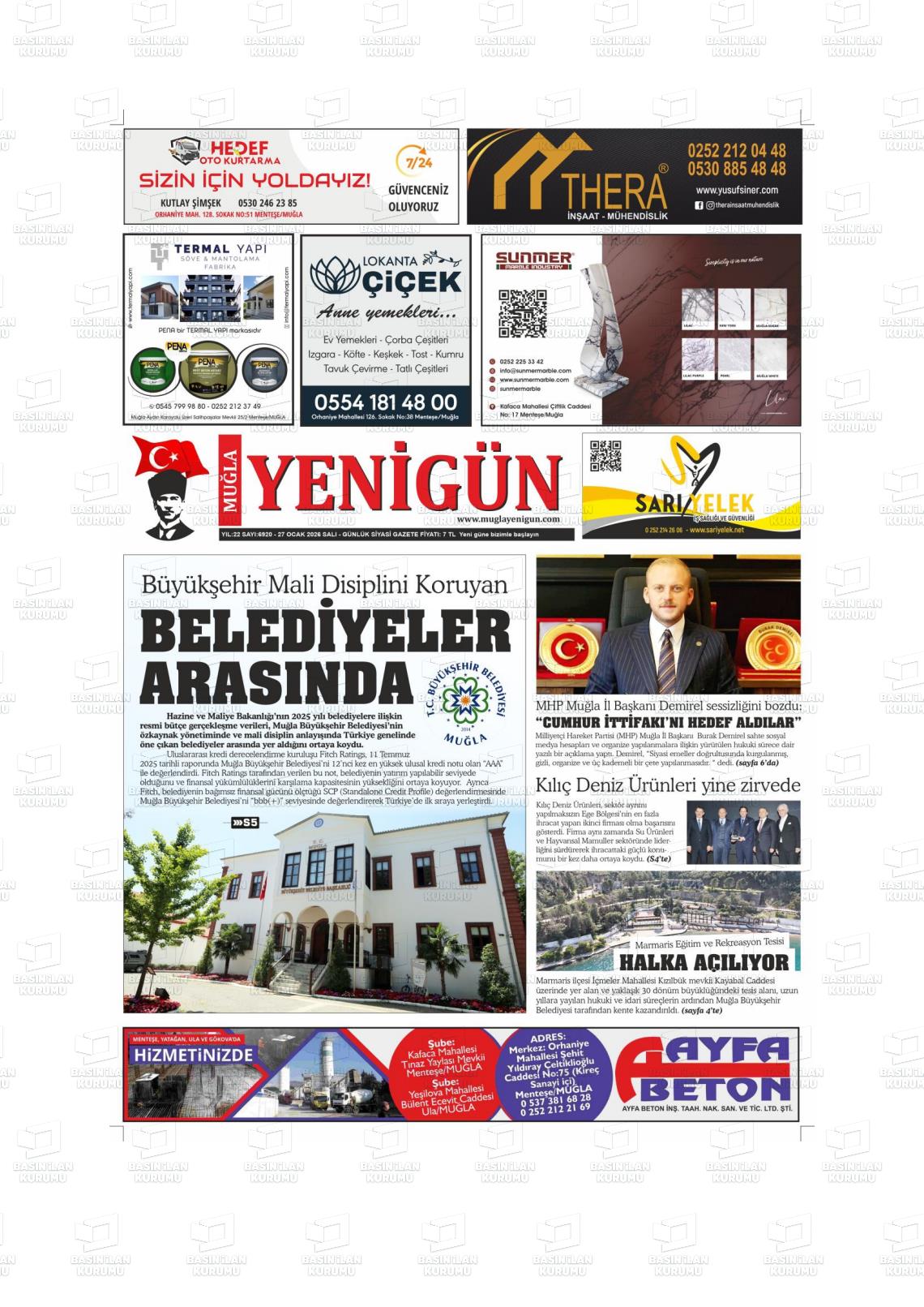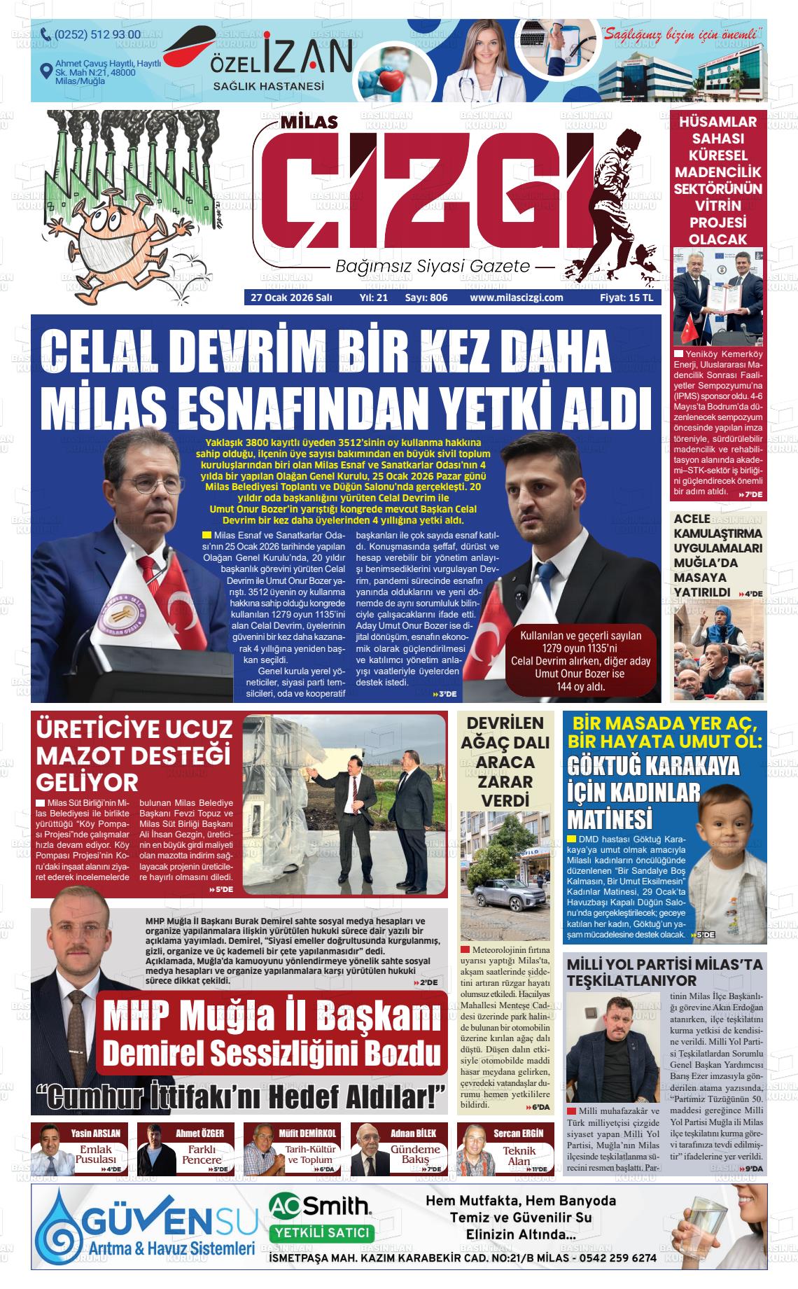 Muğla Yerel Gazeteleri 27 Ocak 2026, Salı Günü Manşeti