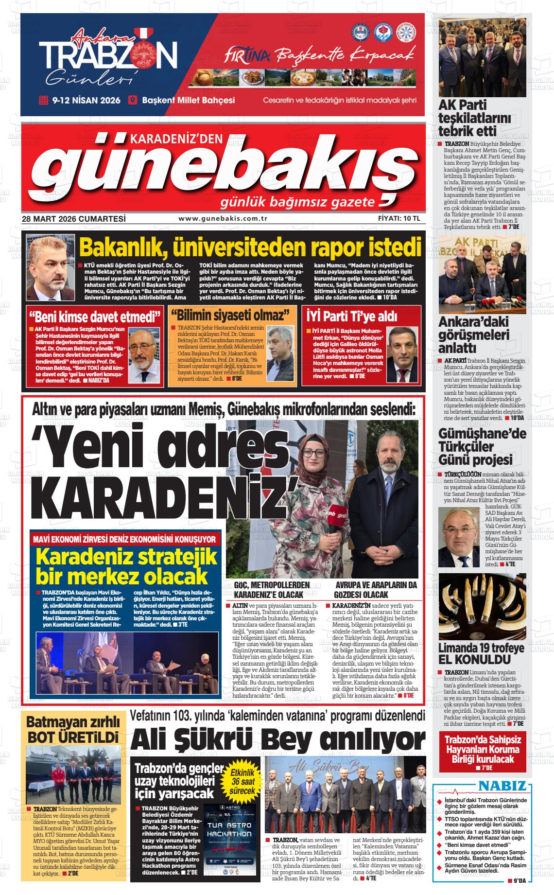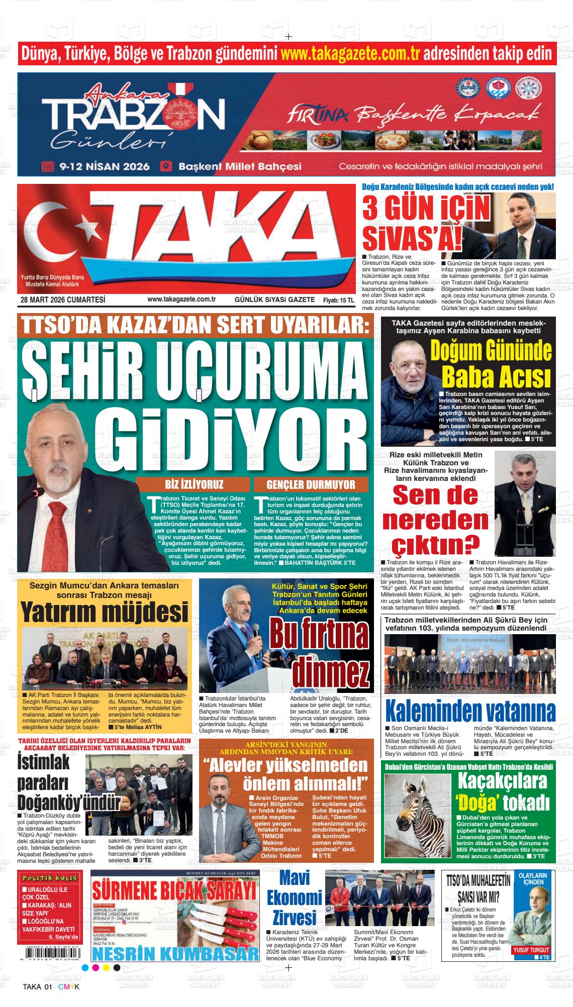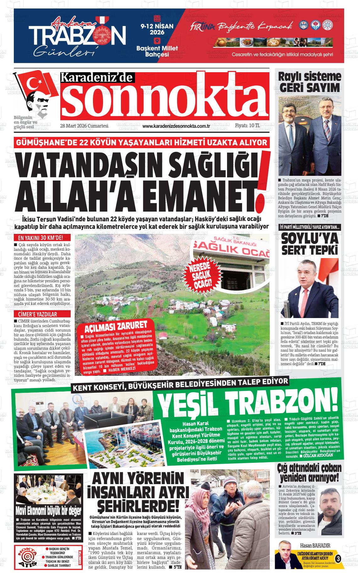 Trabzon Yerel Gazeteleri 29 Mart 2026, Pazar Günü Manşeti