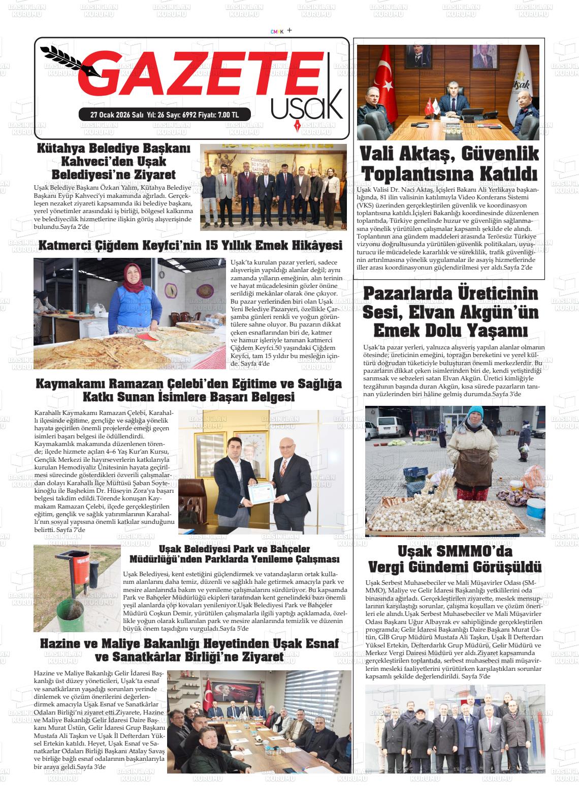 Uşak Yerel Gazeteleri 28 Ocak 2026, Çarşamba Günü Manşeti