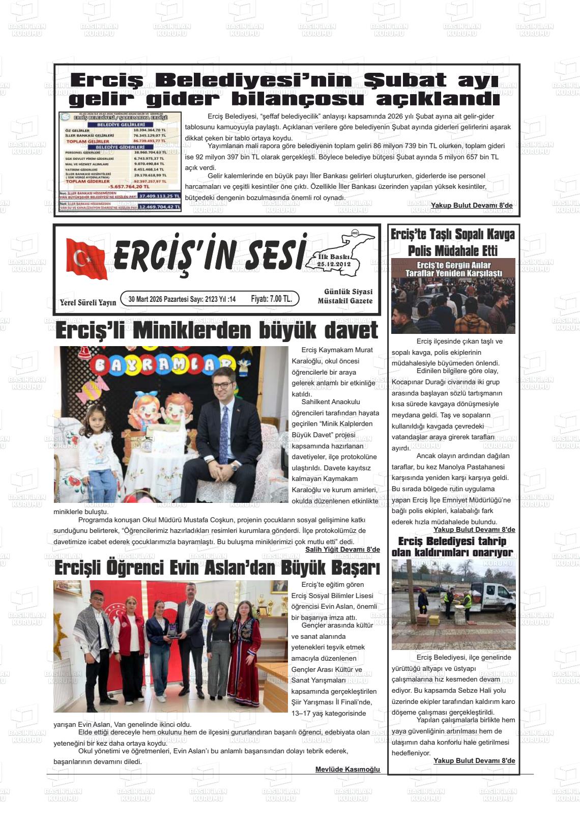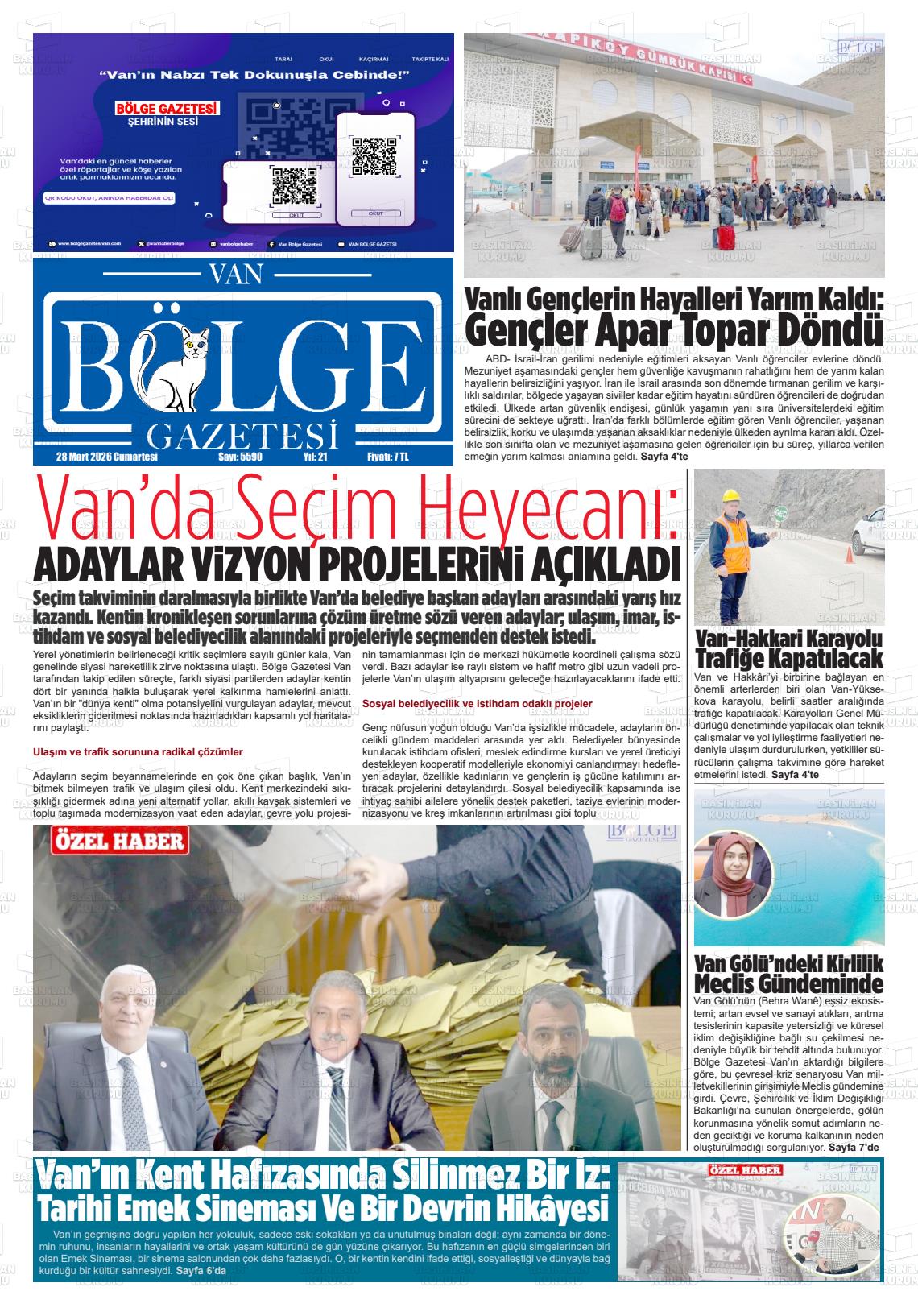 Van Yerel Gazeteleri 29 Mart 2026, Pazar Günü Manşeti