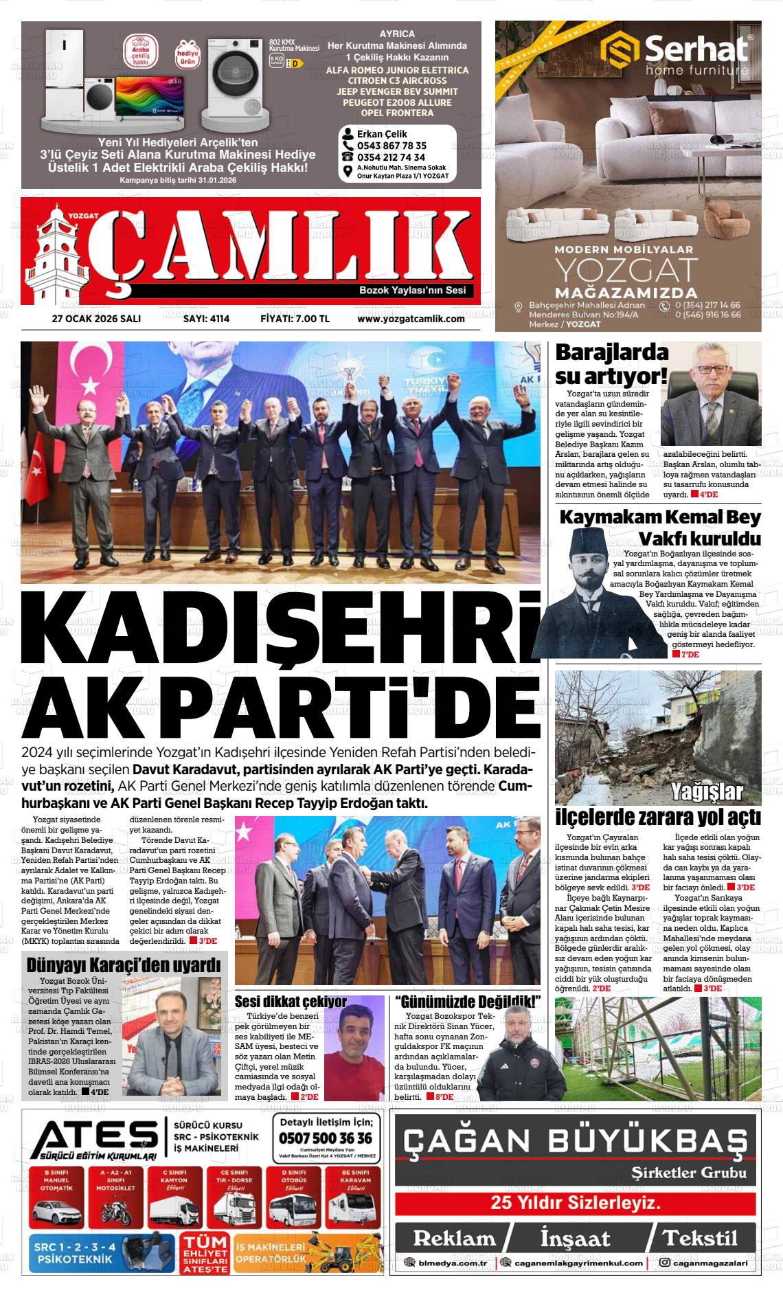 Yozgat Yerel Gazeteleri 28 Ocak 2026, Çarşamba Günü Manşeti