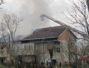 Zonguldak’ta kontrolden çıkan otomobil kullanılmayan evin çatısına düştü